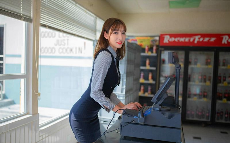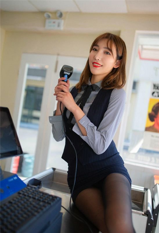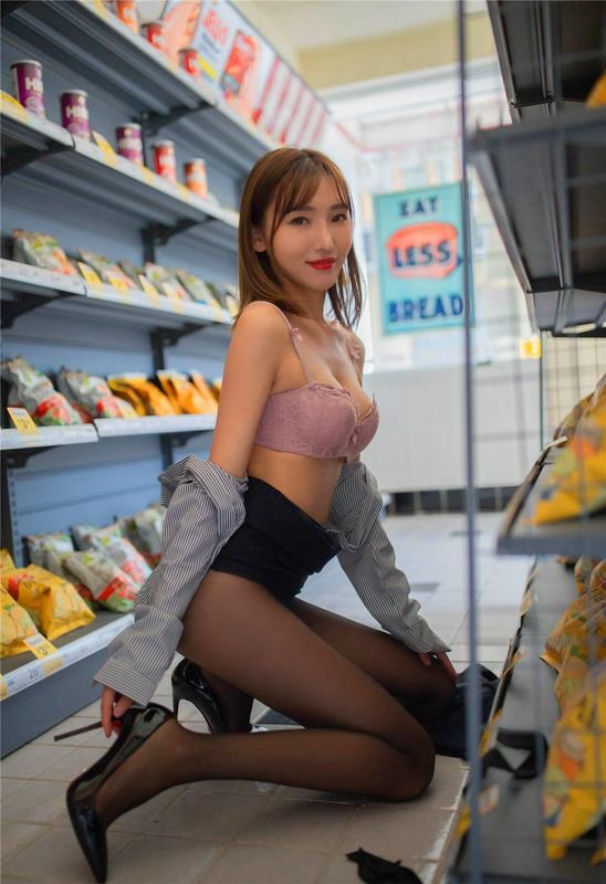 高颜值小姐姐,黑丝高跟长腿,在便利店一件件脱衣服给你看